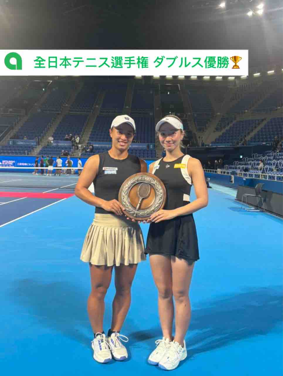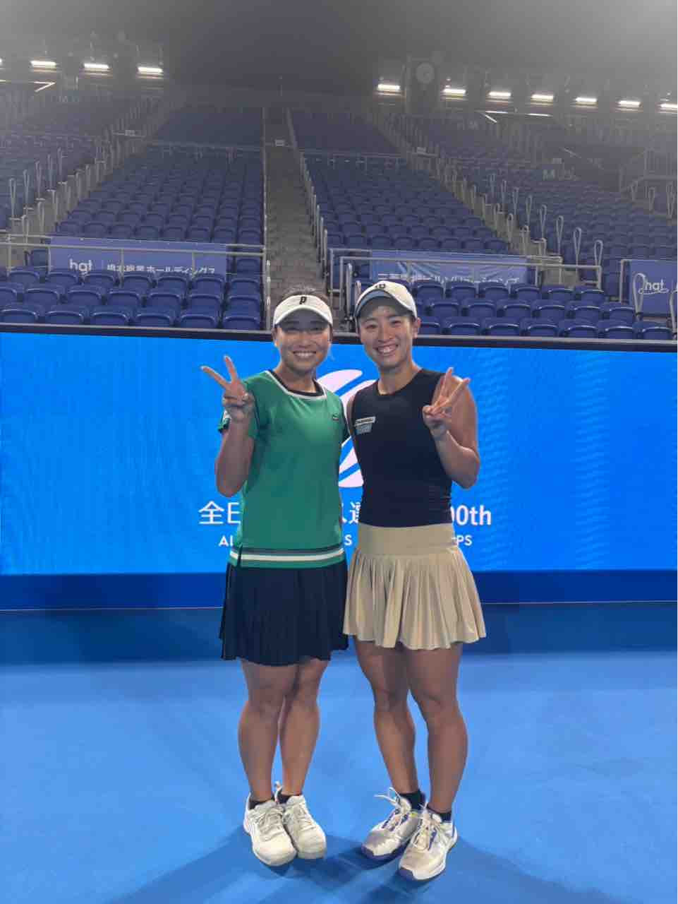 亜細亜大学テニス部OGの山郁美プロ(令和5年度卒業/島津製作所)※写真1枚目左 が、三菱電機ビルソリューションズ全日本テニス選手権100th女子ダブルスにおいて見事優勝されました!!