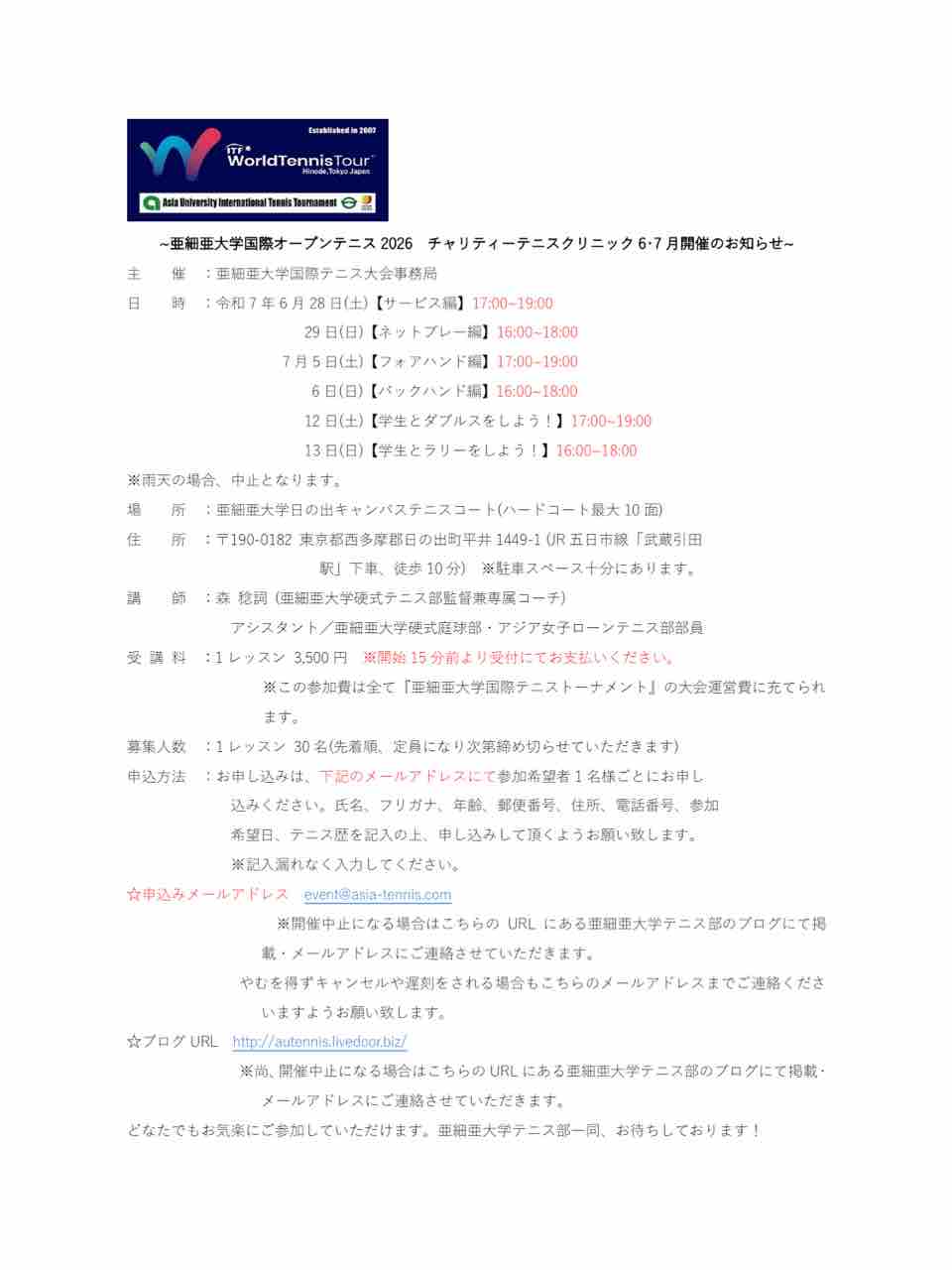 ¤³¤ÎÅÙ¡¢°¡ºÙ°¡Âç³Ø¹ñºÝ¥ª¡¼¥×¥ó¥Æ¥Ë¥¹2026³«ºÅ¤ËÀèΩ¤Á¡¢¥Á¥ã¥ê¥Æ¥£¡¼¥¯¥ê¥Ë¥Ã¥¯¤ò³«ºÅÃפ·¤Þ¤¹¡ª