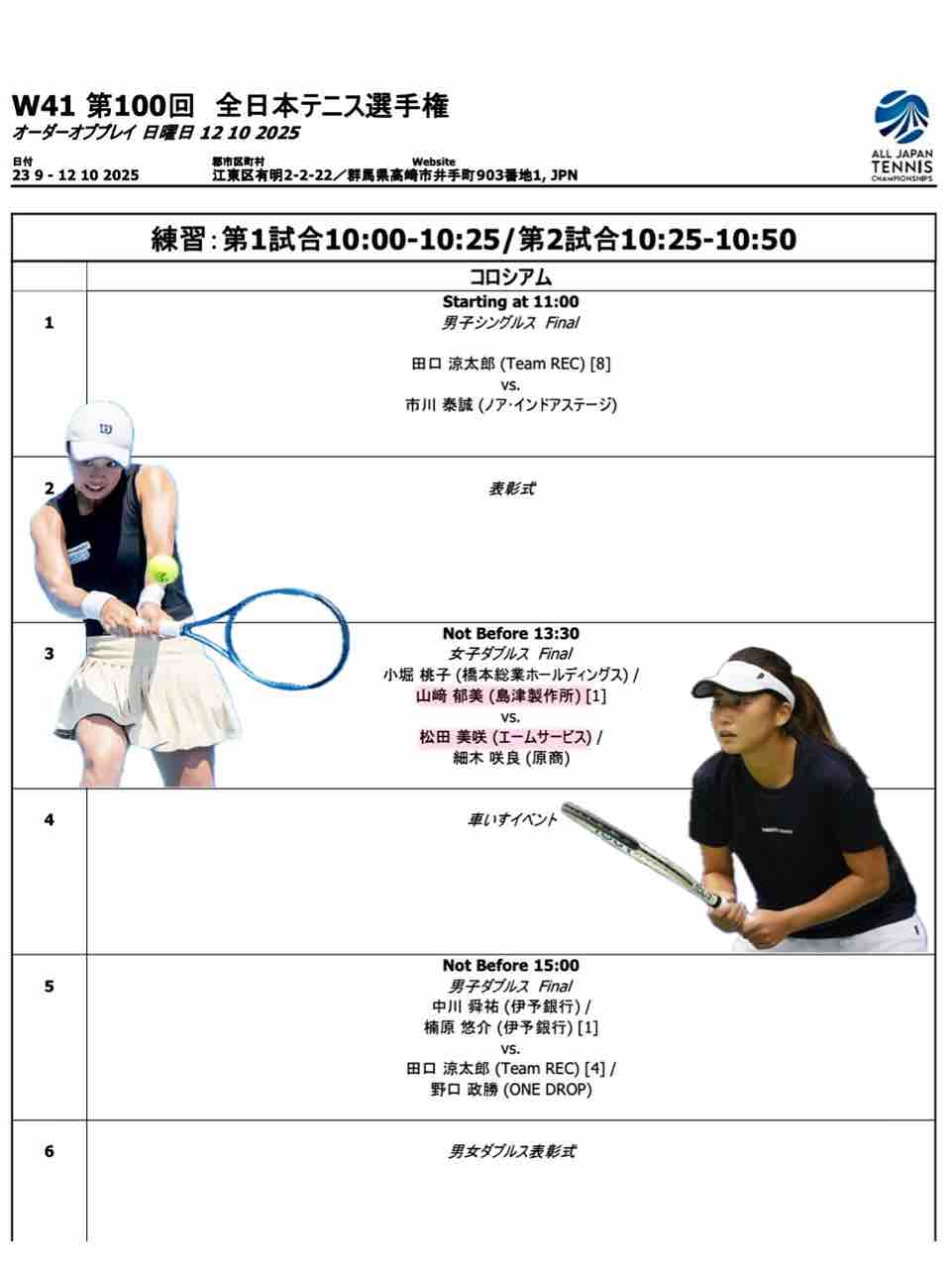📍明日、有明テニスの森で開催される三菱電機ビルソリューションズ全日本テニス選手権100th女子ダブルス本戦決勝にて、